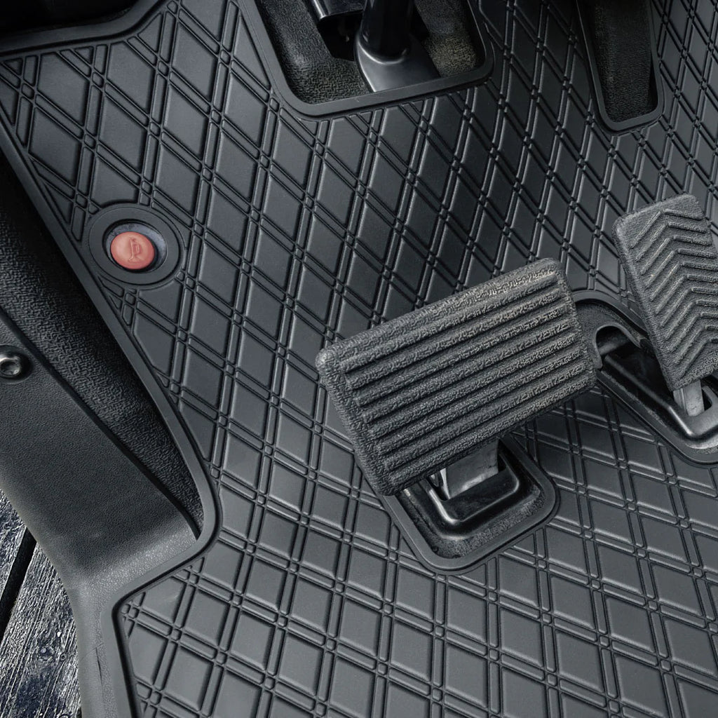 Full floor coverage, high grip surface, laser measured for a perfect fit. Quality 8mm thick mats that protect your floor. Signature diamond pattern to keep water and sand off the top of the mat.